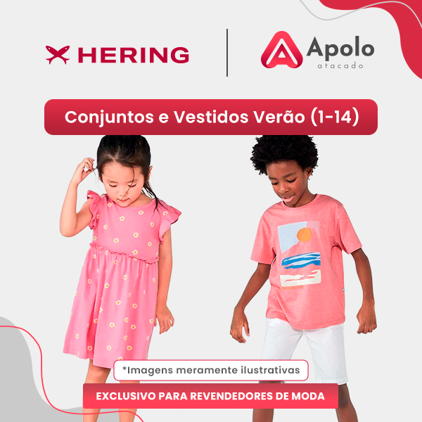 Oportunidade para lojistas e revendedores de moda infantil com mix de conjuntos e vestidos Hering kids saindo a R$ 39,90 cada peça! Grade: 1 - 14 para eles e para elas! Estampas divertidas, mix de tecidos, peças cheias de qualidade e extremo conforto. Vendido em kits com 30 peças no valor de R$ 1.197,00.