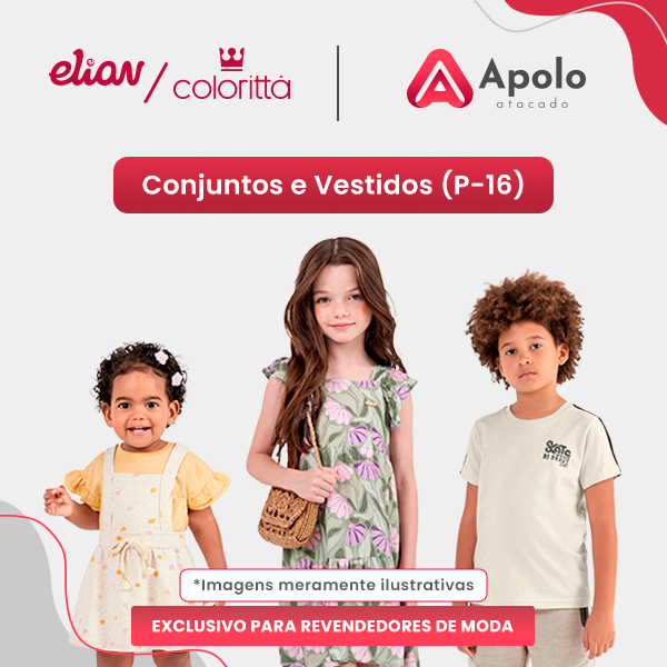 Aposte em marcas renomadas e tenha sucesso de vendas!! Elian e Colorittá com conjuntos e vestidos verão com mix de peças saindo a R$ 27,90 a peça!! Grade: P - 16, distribuído em 41% conjuntos e 59% vestidos, sendo 25% masculino e 75% feminino. Kit vendido com 79 peças - em média 10,5 quilos, saindo a R$ 2.204,10. Aproveite!!