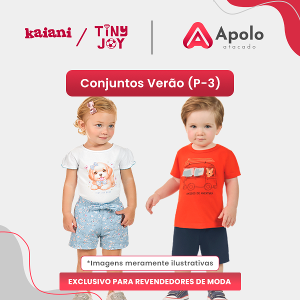 Novidade Kaiani para Revenda. Kit pronto com 30 Conjuntos perfeitos para o verão. Peças estilosas e cheias de charme com tecidos em algodão que garantem durabilidade e total conforto. Grade: P ao 3 - Distribuídos em 73% das peças na marca Kaiani e 27% Tiny Joy, com 40% feminino e 60% masculino. Os modelos apresentam mix voltados para adolescentes que gostam de estar na moda sem abrir mão do conforto e estilo! Vendido em kits com 30 peças - saindo R$ 34,90 cada peça - Kit R$ 1.047,00, não perca!!
