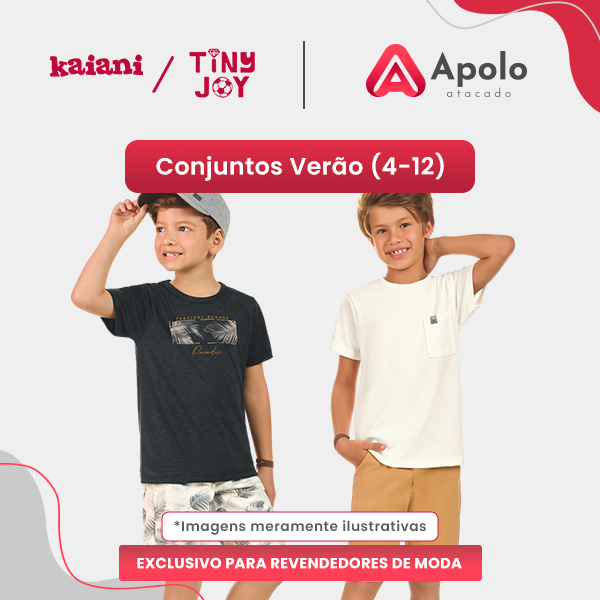 Quer sair na frente neste verão? Aposte no kit Kaiani com 100% conjuntos masculinos. Modelos cheios de conforto e estilo que farão sucesso de vendas na sua vitrine. Grade: 4 ao 12 - Distribuídos em: 83% do 4 ao 8 e 17% 10-12, podendo conter peças no 14 ou 16. Aposte em cores, tecidos e estampas que vão fazer diferença nas suas vendas . Vendido em kits com 30 peças - saindo R$ 39,90 cada peça - Kit R$ 1.197,00, não perca!! O kit já vem sortido e o vídeo é uma apresentação da qualidade das peças e modelos que você pode receber na sua caixa!