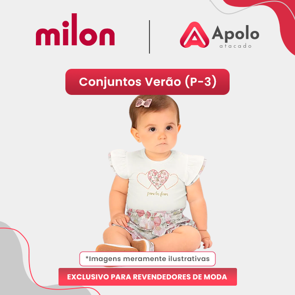Para você lojista e revendedor de moda infantil, um kit especial para acelerar as suas vendas!! Milon! Moda premium com conjuntos super fotos e sofisticados para deixar sua loja preparada para as vendas neste fim de ano! Conjuntos Maravilhosos saindo a R$ 74,90 cada. O kit conta com 15 peças na grade do P ao 3 - sendo 20% do P ao G e 80% na linha de primeiros passos 1-3. Muito charme, beleza e conforto para deixar as pequenas princesas lindas e com toda liberdade.