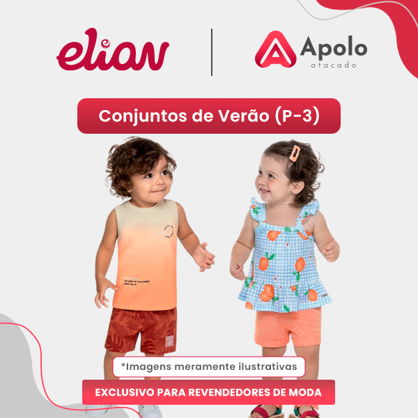 Vem garantir um kit cheio de estilo com conjuntos lindos para este verão. O kit vem com 30 Peças na grade do P-3 sendo 50% feminino e 50% masculino, distribuído em 50% P-G e 50% 1-3. Conjuntos super fofos saindo a R$ 34,90 cada! Kit vendido com 30 peças saindo a R$ 1.047,00.