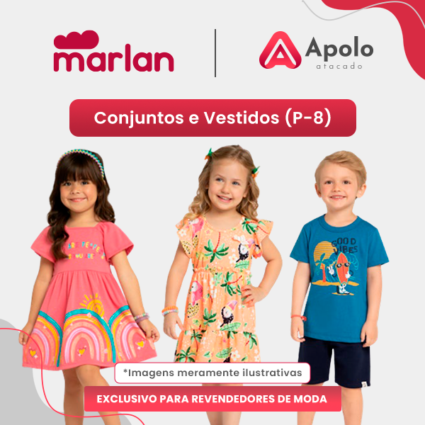 Aposte neste super lançamento Marlan com peças Lindas e Fresquinhas para este verão, o kit conta com (72%) Conjuntos e (28%)Vestidos, Coleção Verão 2025 - com todo o charme e beleza que seus clientes merecem! Grade: P ao 8 - Distribuídos em: 15% do P ao GG, 33% 1-3 e 52% 4-8, sendo 62% Feminino e 38% no Masculino. Os modelos apresentam mix de conjuntos e vestidos com muita informação de moda e detalhes que encantam! Muita cor, brilho e do jeitinho que toda criança gosta! Vendido em kits com 40 peças - saindo R$ 39,90 cada peça - Kit R$ 1.596,00, não perca!!